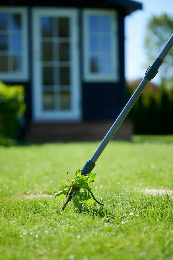 Ogräsupptagare med teleskopskaft som man enkelt kan förlänga skaftet med.