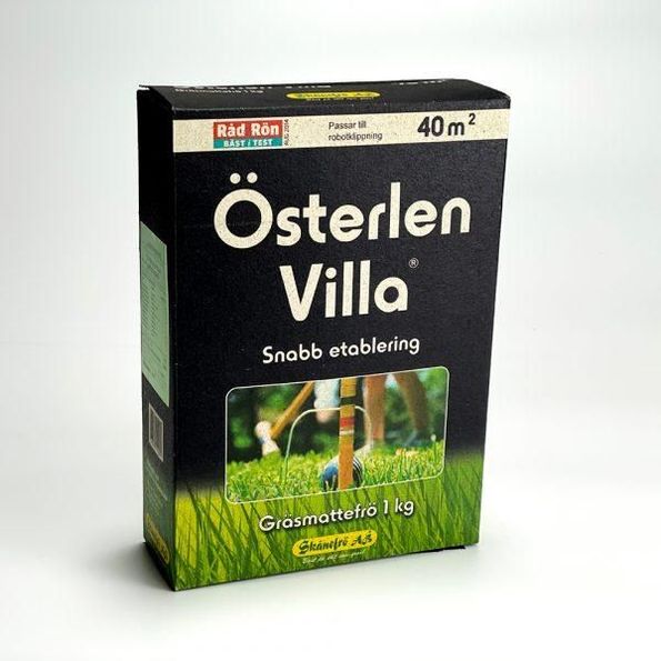 När slitstyrka och snabb etablering är viktig. Österlen Villa ger dig en robust gräsmatta och passar utmärkt vid hjälpsådd. Blandningen är robust och slitstarkt, etablerar sig snabbt och mycket bra vid hjälpsådd av svaga gräspartier. Innehåll: Eng.rajgräs 20 %, Ängsgröe 10 % och Rödsvingel 70%. Sådd: 2,5-3kg/100kvm. 1kg räcker till 40kvm.