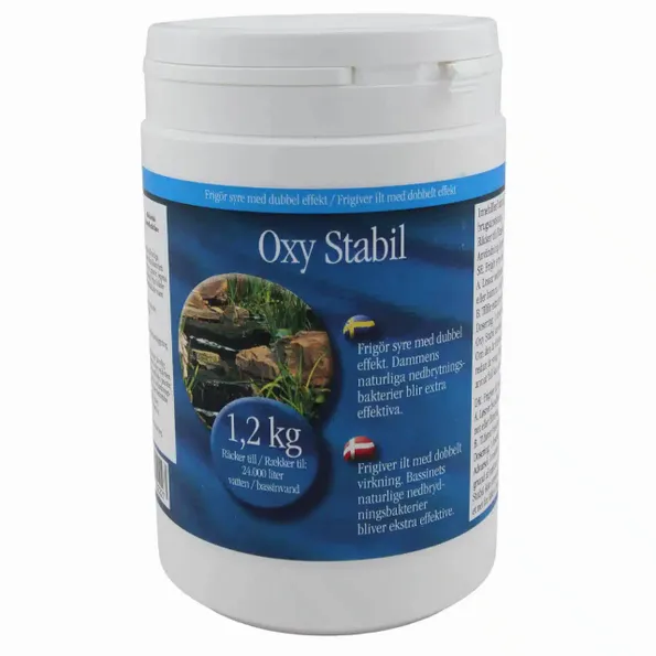 Oxy Stabil verkar på två sätt i dammen för att gynna växterna och fiskarna:
