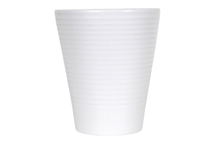 Vit keramikkruka i matt vit, för inomhusbruk.
