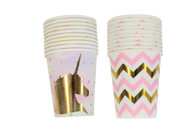 Engångsmugg i papper med enhörningsmotiv. 10-pack