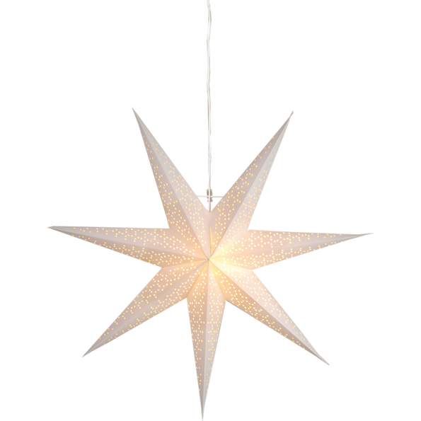 Mönstrad pappersstjärna i vit design. Fin stjärna att dekorera med i fönstret.