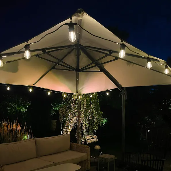 Med partyslingan Cosys varma mjuka sken sätter du stämningen i din utemiljö. Slingan är 5m lång, har 10 ljuskällor och kopplas enkelt in i någon av våra kablar. Vill du ha en längre slinga – koppla flera Cosy efter varandra upp till totalt 6 stycken ljusslingor, vilket kan ge en totallängd på 30 meter.