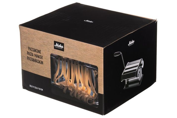 Inkluderar: bordsklämma, 9 olika tjockleksnivåer, skärrullar för lasagne, tagliatelle och spaghetti.