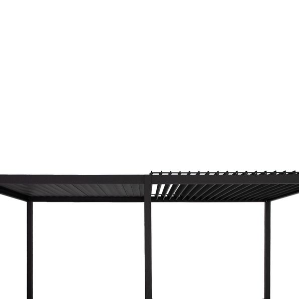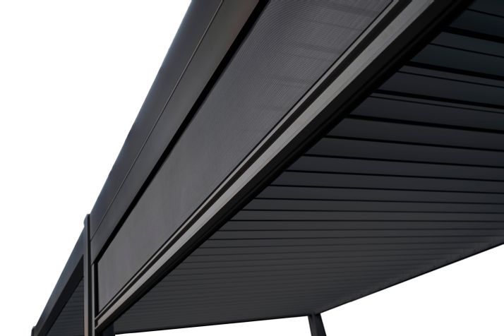 Solidago är en pergola av toppkvalitet med ett praktiskt lamelltak som skyddar vid dåligt väder och är ett bra solskydd en vacker sommardag. Med smidiga inbyggda takrännor som är anslutna runt hela pergolan, avleds vattnet enkelt ner på marken genom hörnstolparna.