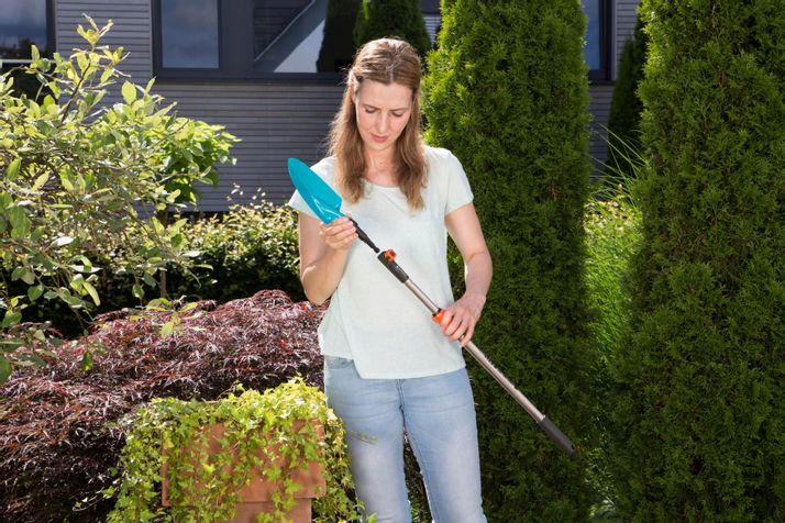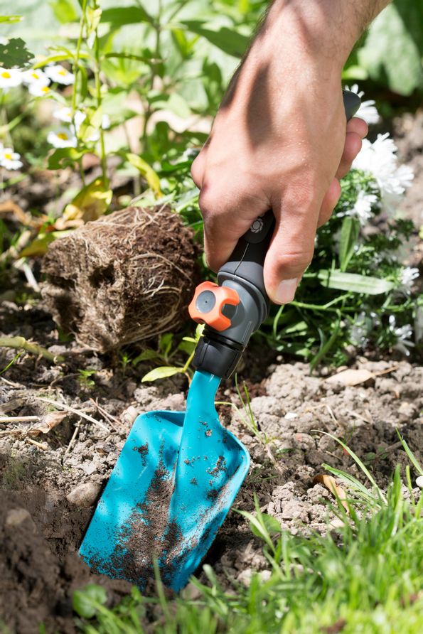GARDENA combisystem Planterspade är mycket behändig vid plantering och omplantering i blomlådor, krukor och rabatter. Extra bekvämt, ergonomiskt format handtag med mjukdelar och säker greppkänsla med halkskydd tack vare böjd skaftända. Om du vill slippa arbete med böjd rygg, kan handtaget enkelt bytas ut mot ett längre i combisystem-serien.