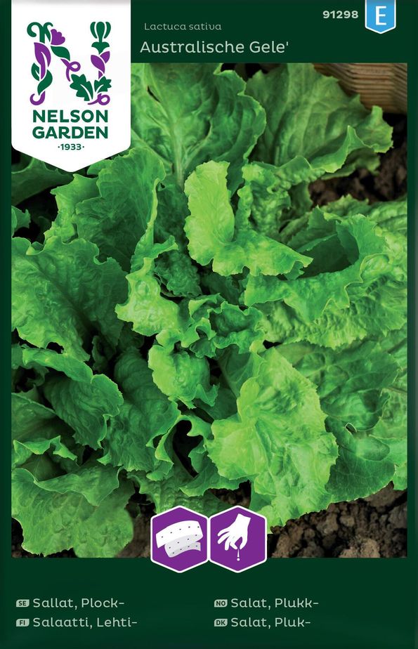 Plocksallat med gulgröna och lätt krusiga blad. Skörda efter hand. Upprepa gärna sådden varannan vecka. Mer information Räcker till: 6 m Växtläge: Sol till halvskugga Plantavstånd: 25 cm Radavstånd: 30 cm Sådjup: 0,5 cm Direktsådd: april – juli Skördetid: juni – september Direktsådd/Plantering: Tidigt, så snart jorden går att bruka-juli. Vattna i såfåran innan sådd. Viktigt att hålla sådden fuktig. Sallatsfrön gror dåligt i hög värme, ej över +20°C.