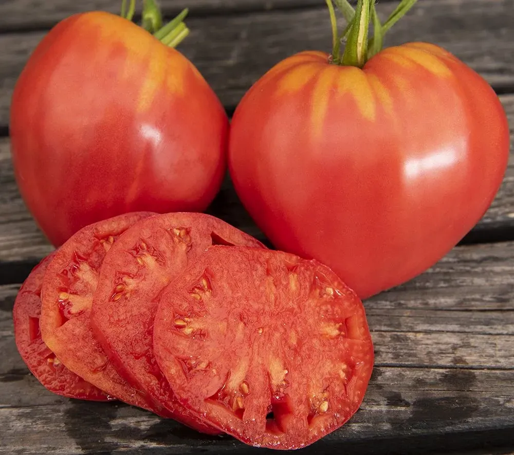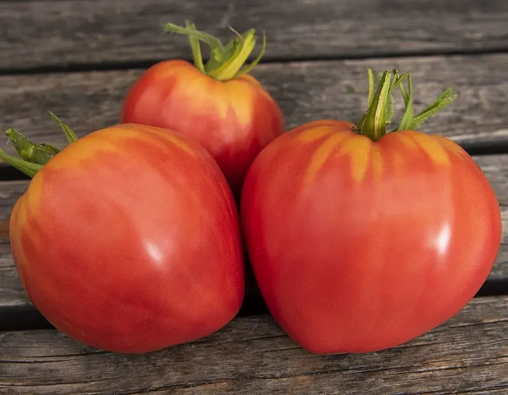 Stora, hjärtformade tomater av Oxheart-typ. Frukterna på ca 250 gram mognar från klarrött till djupt rosarött vid full mognad. Helt genomfärgat, rött och saftigt fruktkött med mild, söt smak. Stadiga plantor för växthus och varma utelägen.