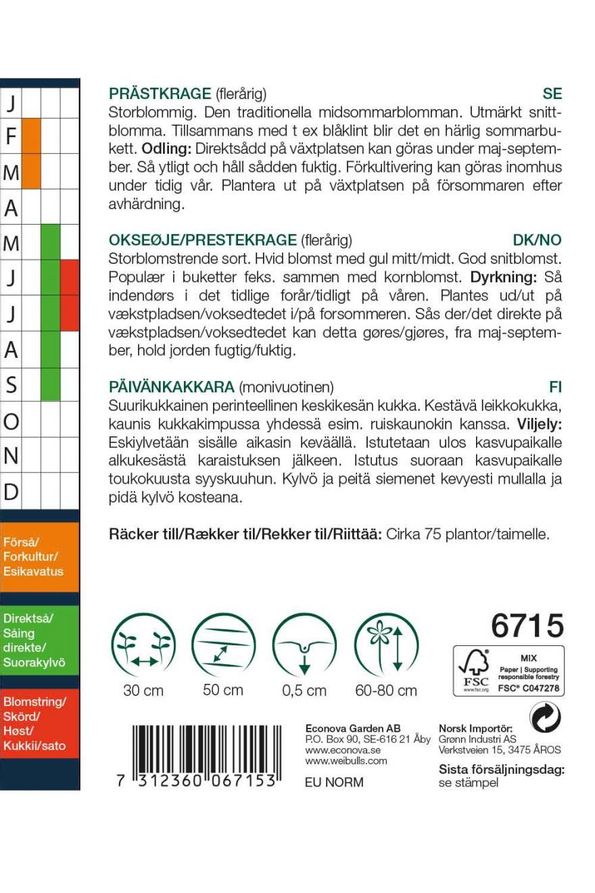 Storblommig. Den traditionella midsommarblomman. Utmärkt snitt- blomma. Tillsammans med t ex blåklint blir det en härlig sommarbukett.