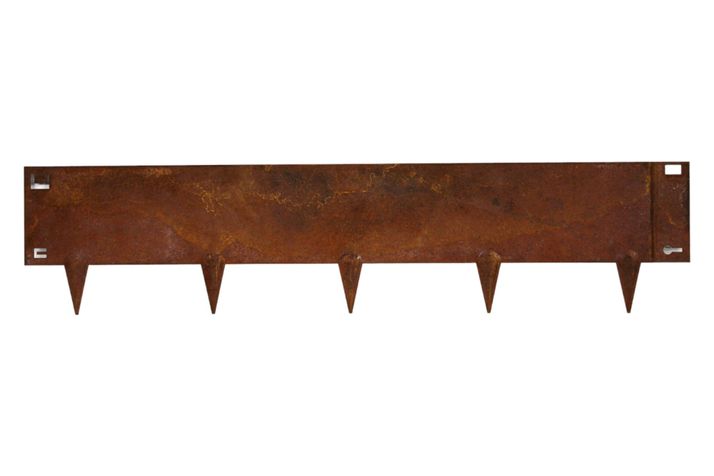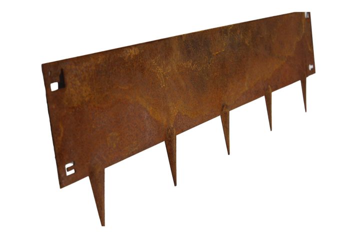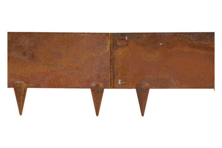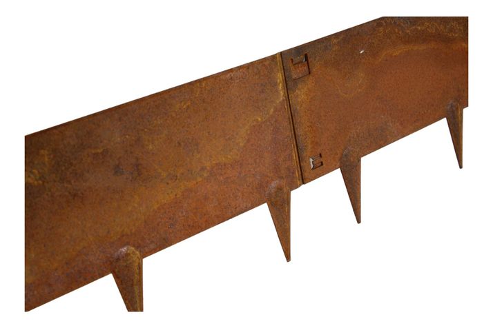 Kraftig rabattkantlist med smidigt lås för att fästa ihop flera längder. Perfekt att använda som avskiljare i trädgården mellan exempelvis rabatt eller trädgårdslandet. Tillverkad av 1,5 mm cortenstål. Finns i 3 olika färger svart, rost, galvanizerad. Mått: H24xL106 cm