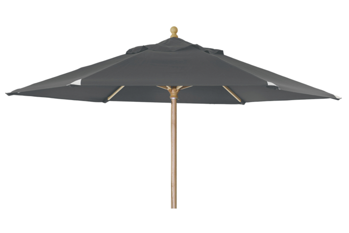 3 m parasoll av FSC-märkt trä (bok) med mattlackerad yta. 2-delad stång, Ø48mm. Vackra läderskoningar och väv av 250 g polyester.
