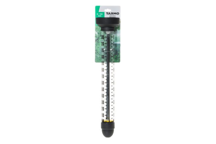 Stor regnmätare med intervall från 0 till 130 mm.