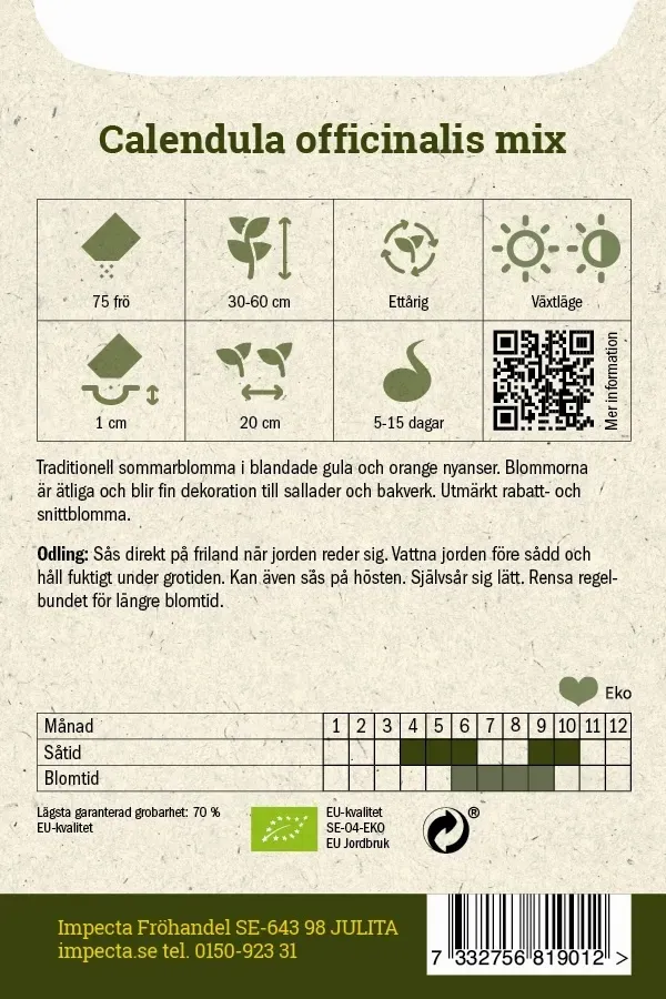 - Portionsmängd: 75 frö