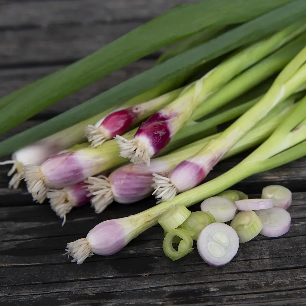 Stadig grön blast med liten lökbildning vid basen i mer eller mindre röda nyanser. Snabbväxande och pålitlig vårprimör. Mjäll och krispig, hela växten kan användas i sallader, wok, matlagning m.m.
