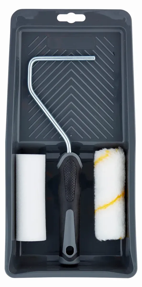 Rollerset med bricka och 2 rullar. Brickan är 3,5 x 15 cm och har spår för en jämn och smidig applicering på rollern. Skaftet är tillverkat med ett mjukt grepp vilket bidrar till ett bra grepp.