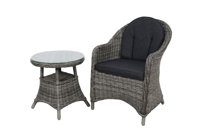 Sidobord i granitfärgad konstrotting och stomme av aluminium.