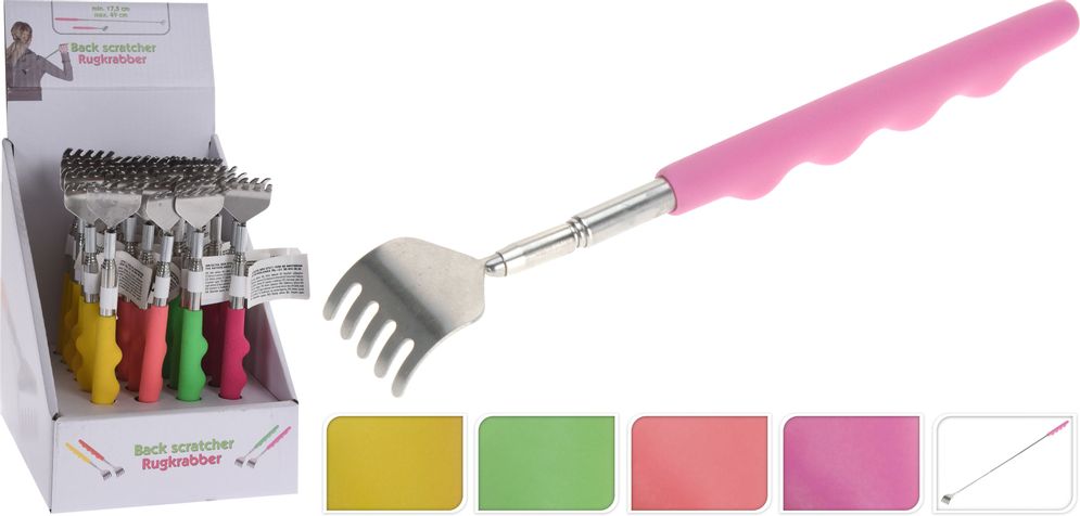 Förlängningsbar ryggkliare i metall och handtag av plast.