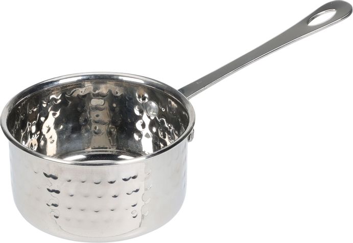 Liten minikastrull i rostfritt stål, perfekt att servera sås eller andra tillbehör i.