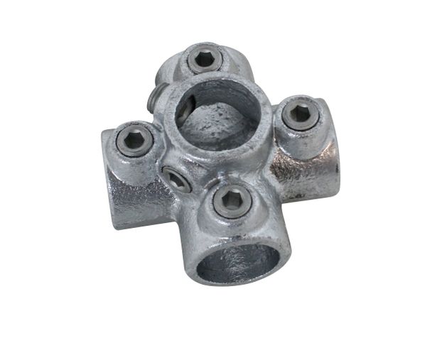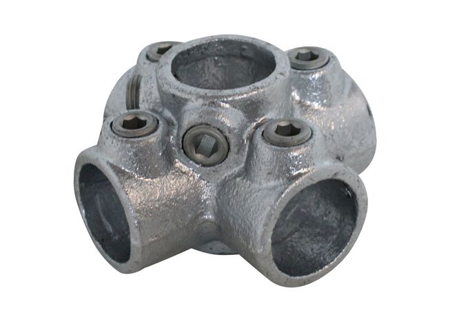 Rörkoppling i varmgalvaniserat stål, sexvägskors. Passar till våra DIY-kopplingar.