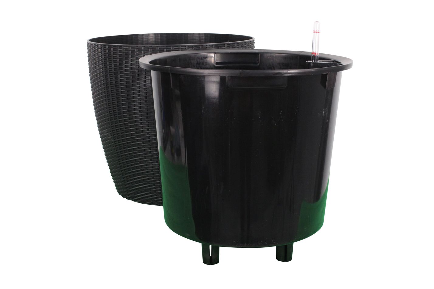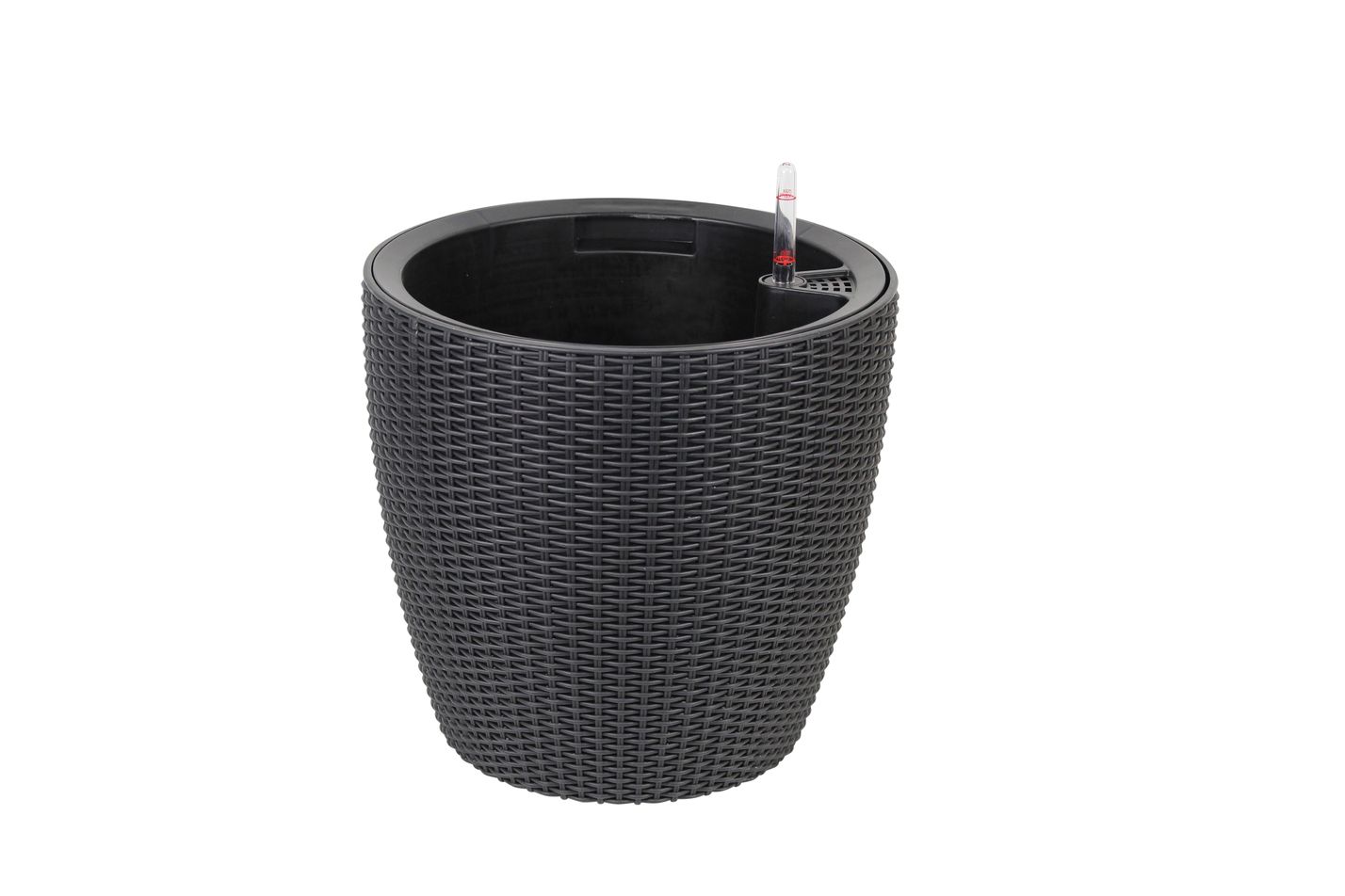 Självbevattningskruka i snygg design. Funkar utmärkt både inom- och utomhus och är det optimala krukvalet för dig som vill att växterna ska förses med lagom mängd vatten. Växterna får vatten underifrån och dricker så mycket som de behöver – precis som i naturen. När rötterna hunnit växa ner till reservoaren så krävs det enbart att man fyller på när mätstickan visar på lite vatten. Använd krukan såhär: I botten av varje kruka ute finns en röd förseglingsskruv (avtappningsplugg). I vissa modeller finns även en förseglingsskruv i vattenreservoaren. När krukan används inomhus, ska skruven/skruvarna dras åt så att vattnet stannar kvar i vattenbehållaren. När krukan används utomhus, tas skruven/skruvarna bort för att säkerställa dränering av överflödigt vatten.