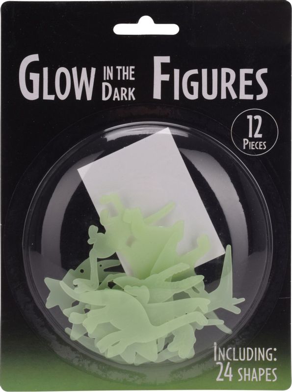 12-pack med självlysande figurer. Häftmassa ingår för enkel uppfästning.