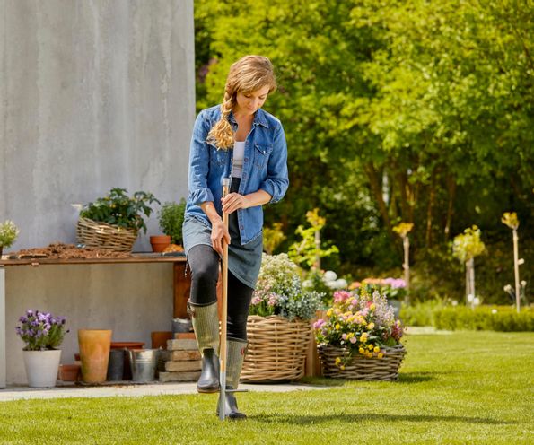Tack vare den praktiska One-Click-kopplingen kan de enskilda tillbehören enkelt fästas och bytas ut när som helst. Så snart delen sitter fast är anslutningen stabil. Skaftet är tillverkat i FSC 100 %-certifierat lärkträ av hög kvalitet och en robust spets i rostfritt stål. Tack vare den höga kvaliteten och snygga designen kan ClickUp!-skaftet integreras i alla trädgårdar och ger möjlighet till individuell anpassning.