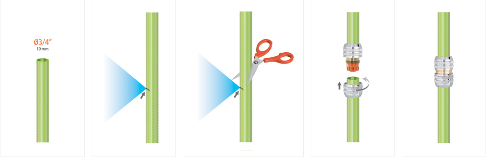 Om din trädgårdsslang går sönder så behöver du inte köpa en ny: använd bara denna speciella koppling för en perfekt reperation utan att behöva några verktyg.