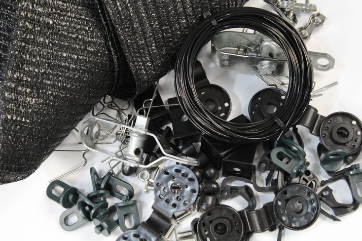 Komplettera med alla våra tillbehör så som vajer, vajerspännare, vinklar, skruvar etc för att få ett perfekt solskydd.