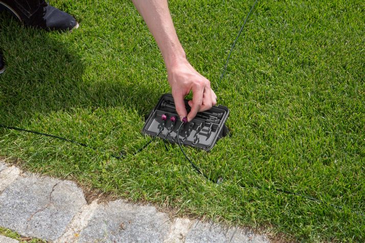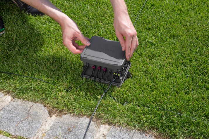Denna vädertåliga box i plast ger skydd och förvaring för de kablar och kopplingar som är kvar utomhus.