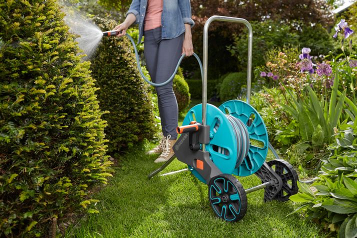 GARDENAs behändiga slangvagn CleverRoll M ger dig platsbesparande förvaring för trädgårdsslangen. Med ett ergonomiskt handtag med mjukdelar för extra komfort vindas slangen enkelt upp på trumman.