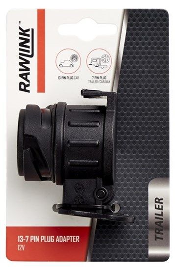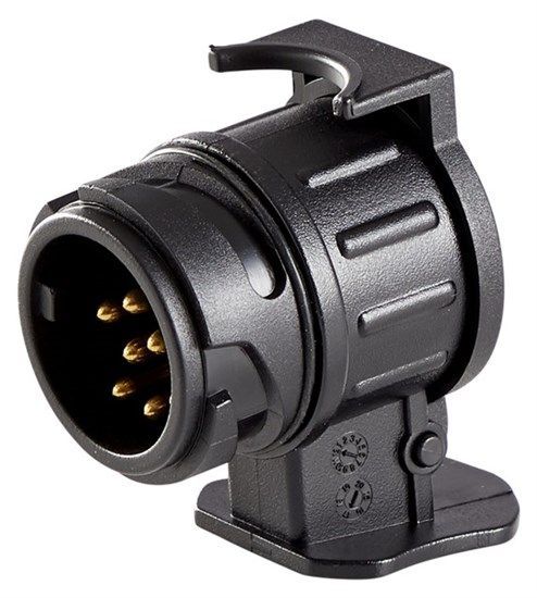 Adapter mellan 13-polig kontaktdosa på bil och 7-polig stickkontakt på släpvagn eller husvagn.
