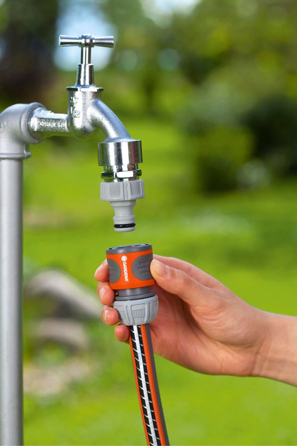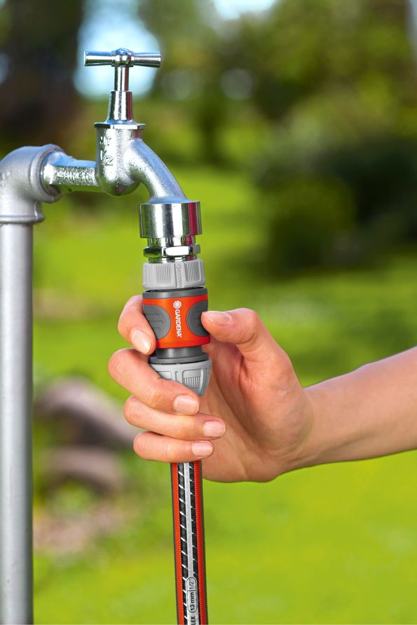 GARDENAs snabbkontakt är en användbar adapter för snabb och lättanvändlig anslutning vid slangens början. Den elastiska ringen som du finner i änden på snabbkontakten fungerar som skydd mot skada. När kontakten ska anslutas till trädgårdsslangen kommer dess Power Grip att vara till stor hjälp. Den särskilt formade kopplingsmuttern försäkrar högt slangtryck. De mjuka räfflade handtagsfördjupningarna försäkrar ett fast grepp även med blöta händer. Att släppa på anslutningen genom att helt enkelt dra, är väldigt lätt. Tack vare sitt frostmotstånd påverkas inte snabbkontakten av låga temperaturer.