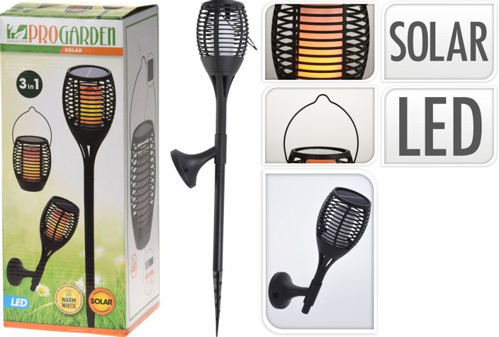 Vacker soldriven LED-lampa som ser ut att skina som en fackla.
