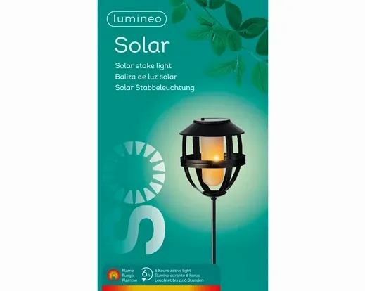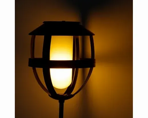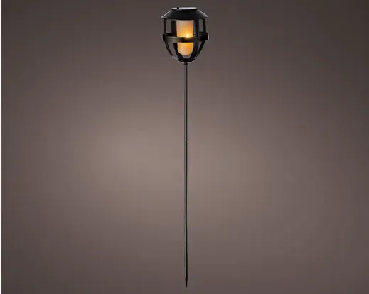 Fackla i svartlackerad metall som drivs av solceller och lyser i en fin varmvit, flammande effekt.