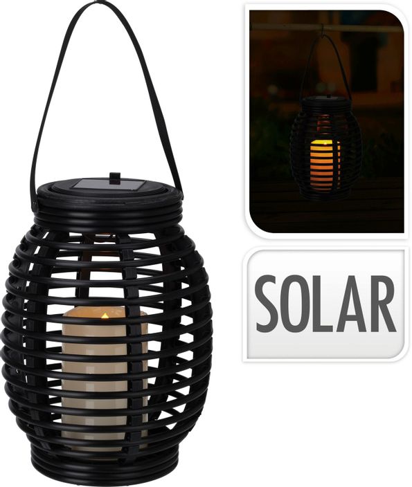 Svart lykta med handtag, drivs av solceller.