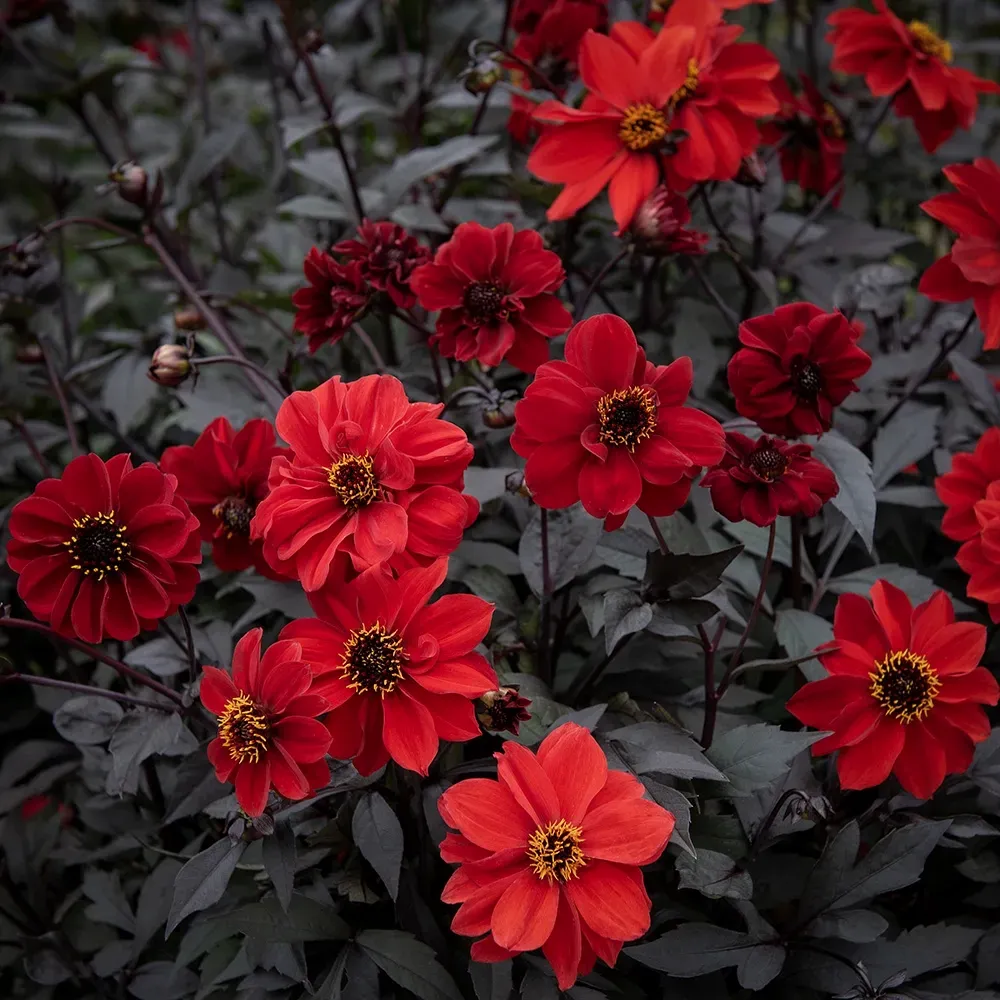 Enkla till dubbla, lysande rubinröda blommor med mörk mitt över ett magiskt, grönsvart bladverk i fin kontrast. Enstaka avvikande kan förekomma. Mycket rikblommande med buskigt och välgrenat växtsätt. Utsökt inslag i rabatt, krukor och lådor.
