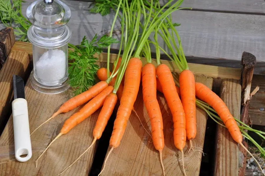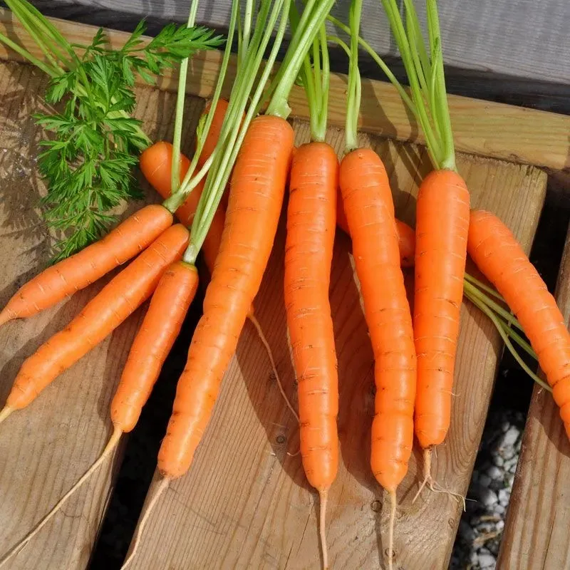 Cylinderformade, orangefärgade rötter, utsökt spröda och delikata. Mycket snabbväxande. Kan skördas tidigt som minimorötter.