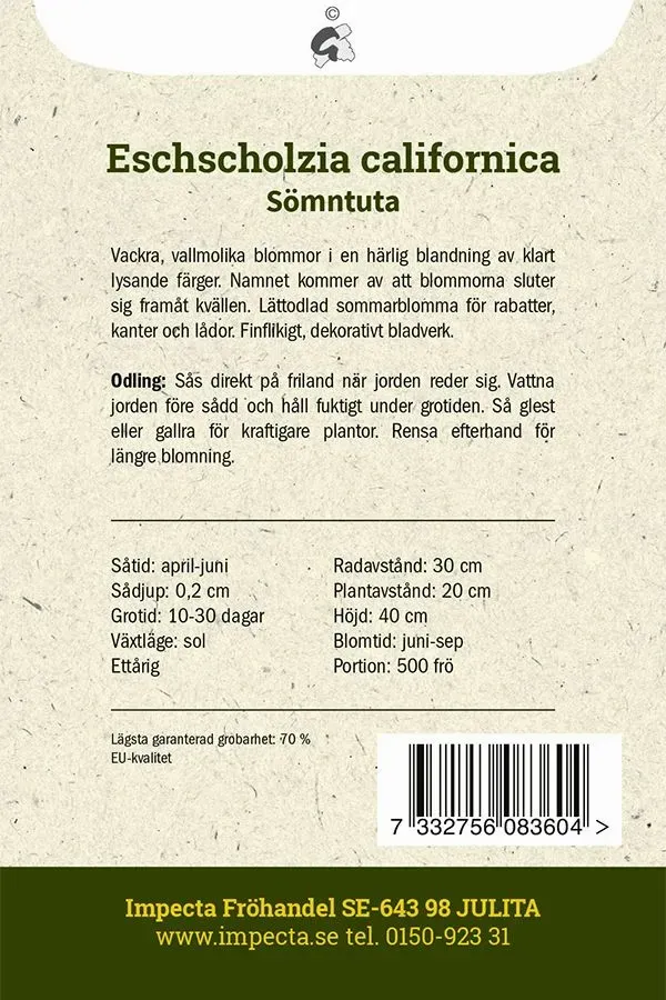 Sås direkt på friland när jorden reder sig. Vattna jorden före sådd och håll fuktigt under grotiden. Så glest eller gallra för kraftigare plantor. Rensa efterhand för längre blomning.