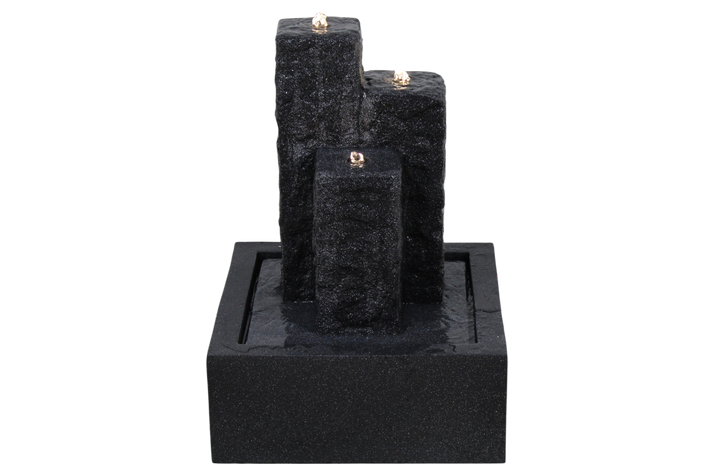 Vatten har en lugnande och avstressande inverkan på oss människor, framförallt att höra ett porlande från ett litet vattenspel eller fontän. Det enda kravet för vattenspel är tillgång till el för att pumpen ska fungera. I övrigt behövs egentligen bara vatten. Vattenspelet är tillverkat i stenimitation, tillverkad i glasfiber och natursten. Levereras komplett, med ledlampa och pump. Mycket enkel inkoppling. Drivs med 12 volt transformator. Slang och LED lampa är fördraget. Kabellängd 5 meter. Bör förvaras frostfritt under vintertid.