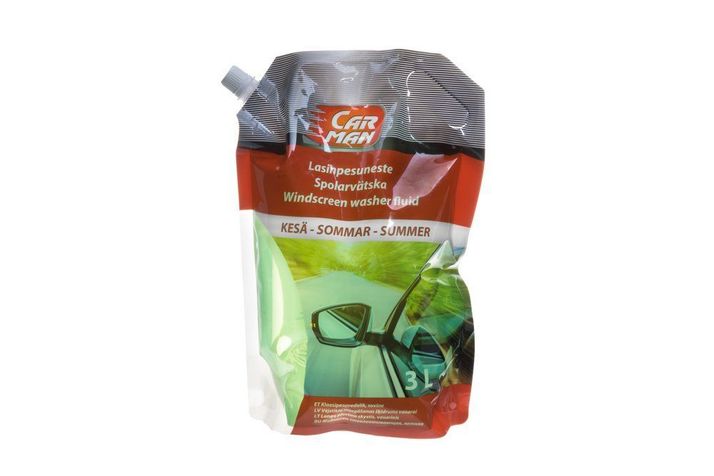 Spolarvätska för sommarbruk i 3 liters plastpåse.