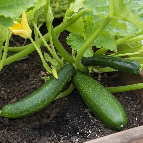 Mörkgröna, släta, enhetligt cylindriska frukter med vitt, fast, välsmakande fruktkött. Tidig, rikgivande och snabbväxande med buskigt, kompakt växtsätt för friland och pallkrage. Ej rankande. Används färsk i sallader, grillad eller tillagad i grytor, gratänger, ostkaka m.m. Även blommorna är ätliga.