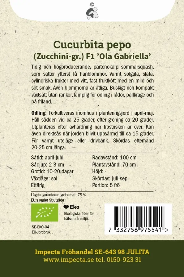 Utplanteras efter avhärdning när frostrisken är över. Kan även direktsås när jorden blivit uppvärmd till ca 15 grader. För varmt uteläge eller drivbänk. Skördas efterhand 20-25 cm långa.