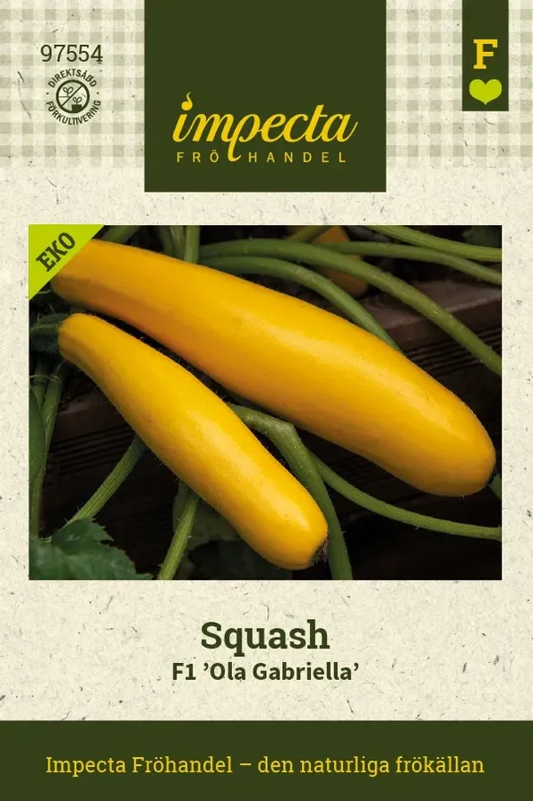 Tidig och högproducerande, partenokarp sommarsquash, som sätter ytterst få hanblommor. Varmt solgula, släta, cylindriska frukter med vitt, fast fruktkött med en mild och söt smak. Även blommorna är ätliga.