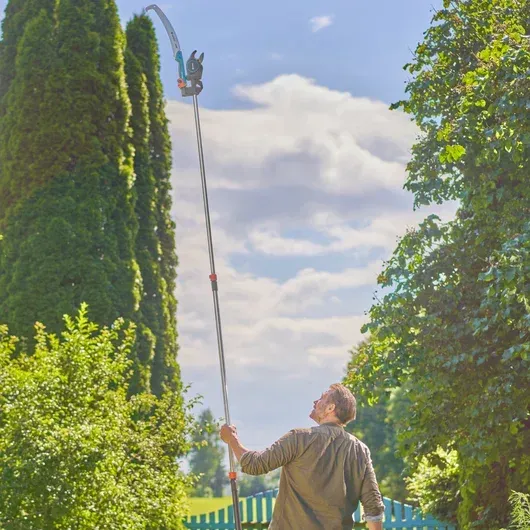 Detta sågtillbehör för GARDENA StarCut Pro L är designat för användarkomfort och hanterbarhet, oavsett om det används som handsåg eller för att såga på höjd med StarCut Pro.