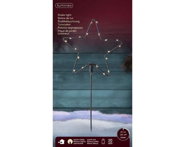 Stjärna på pinne med en ljusslinga på 20 varmvita lampor.