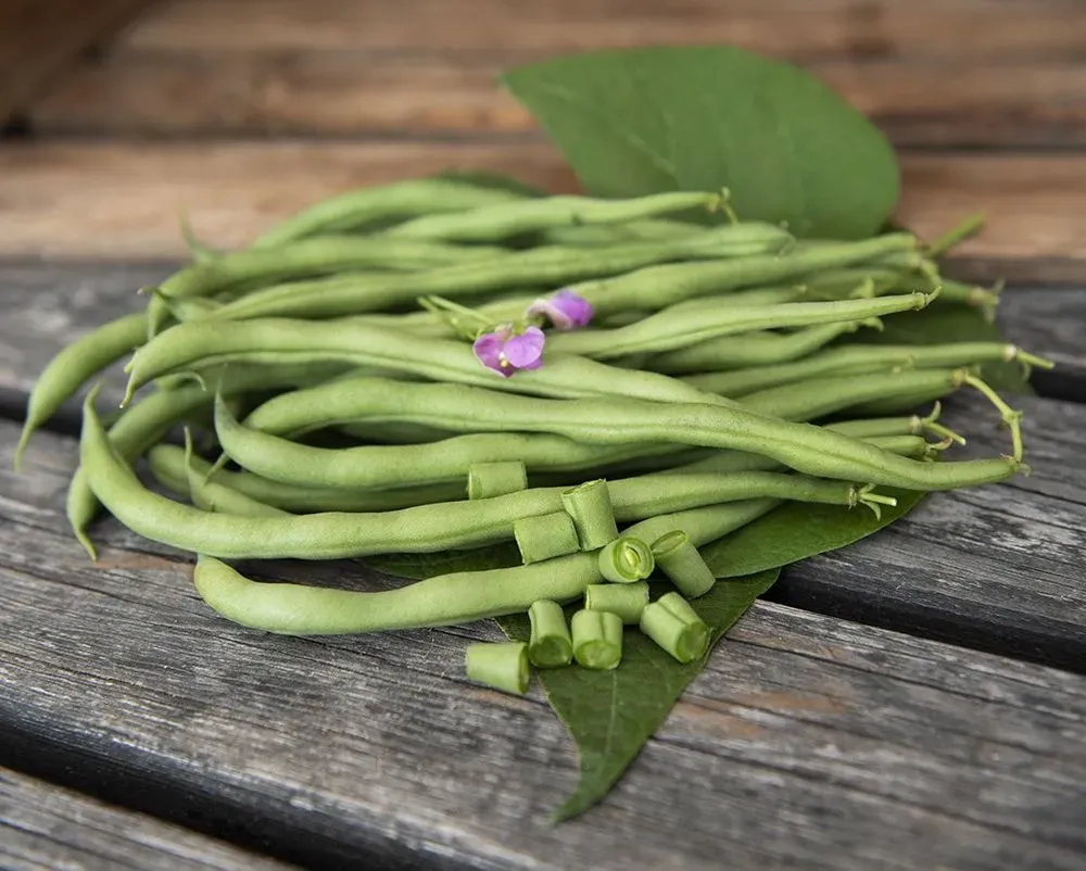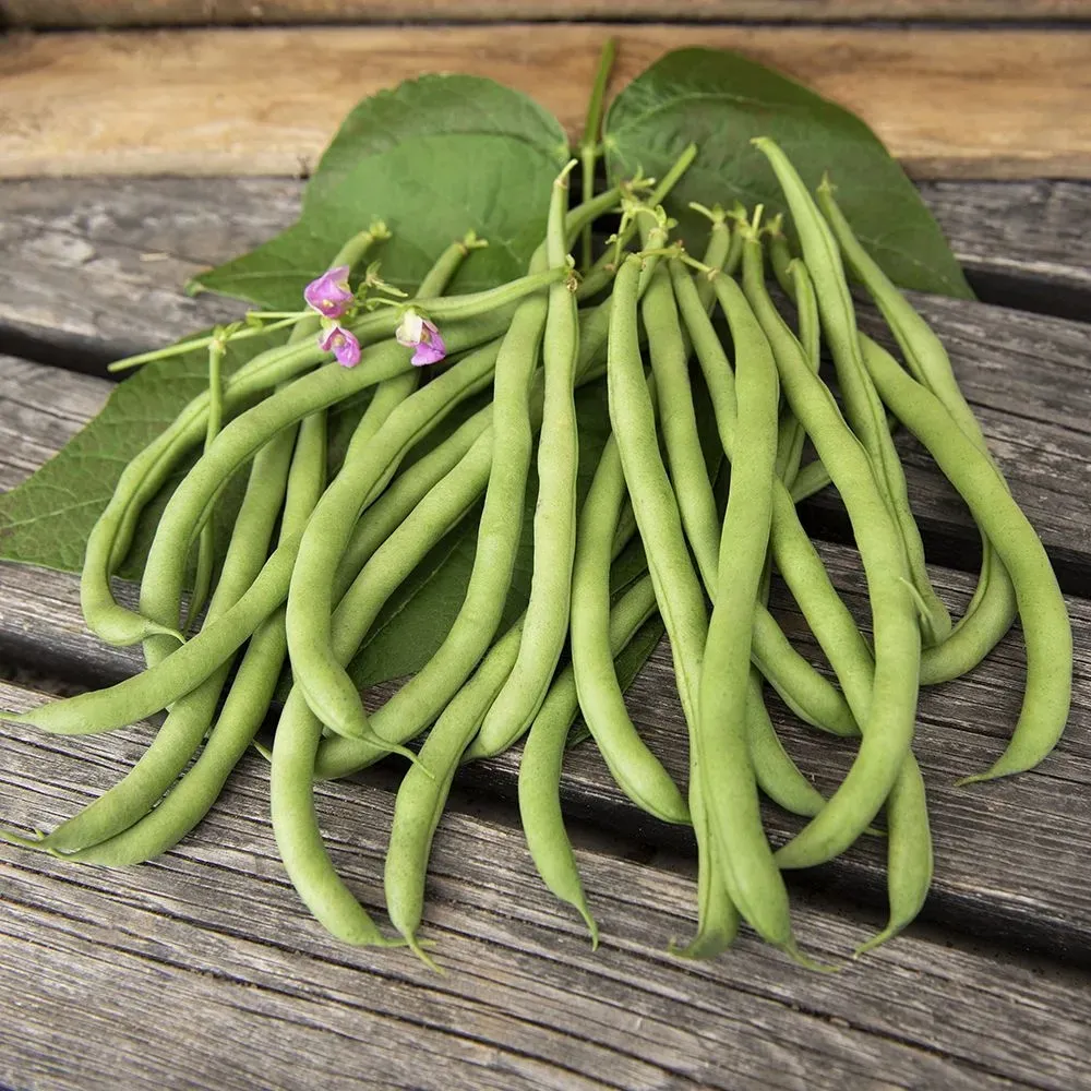 Hög. Krispiga, trådfria, ca 18-20 cm långa, gröna baljor med mild, fin smak. Fin fryssort. Odlas i spaljé, tipi eller liknande.