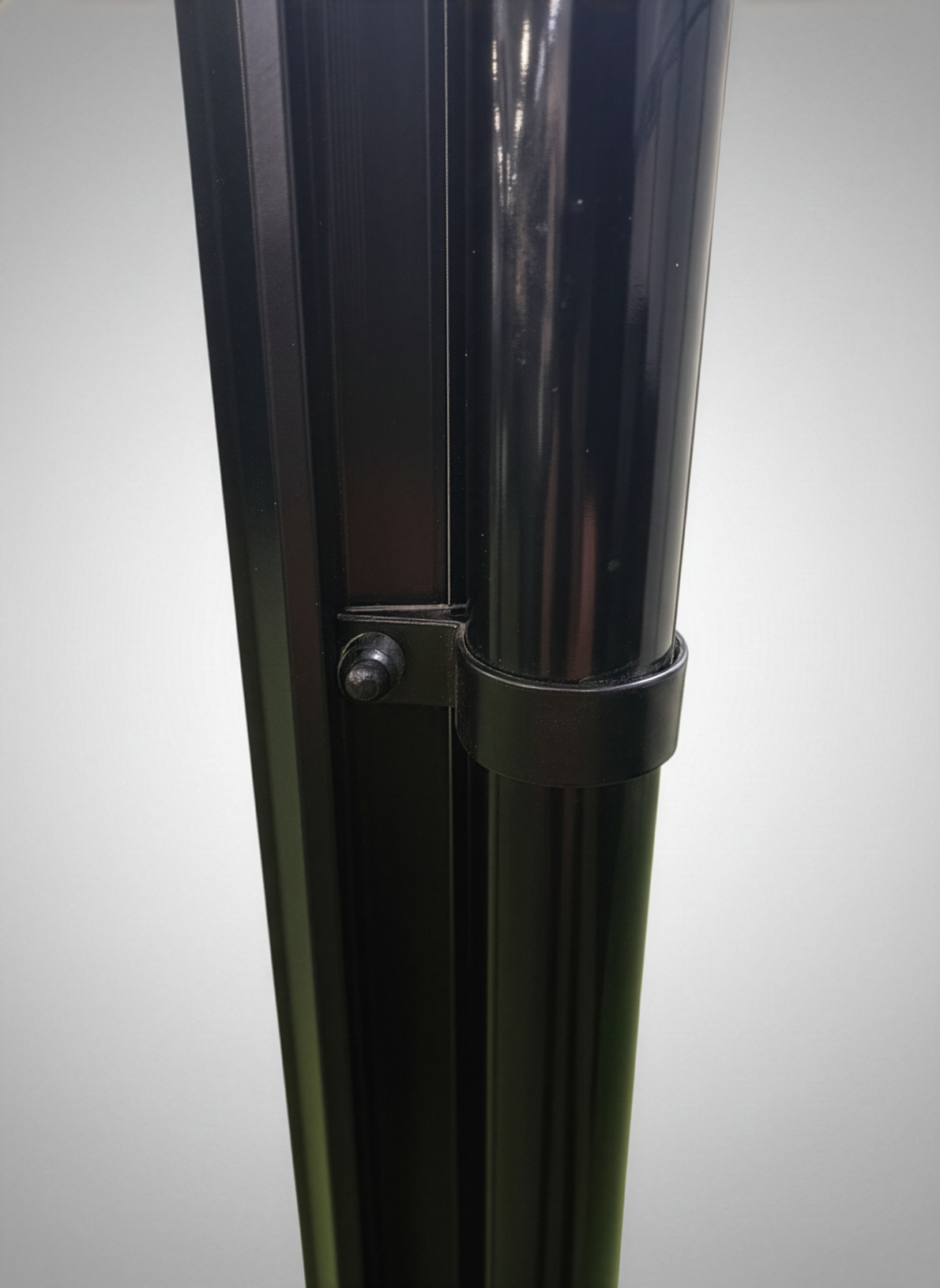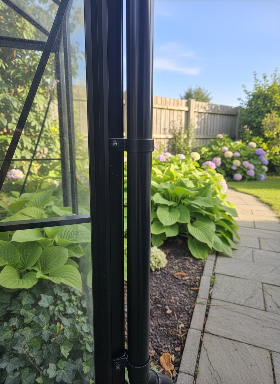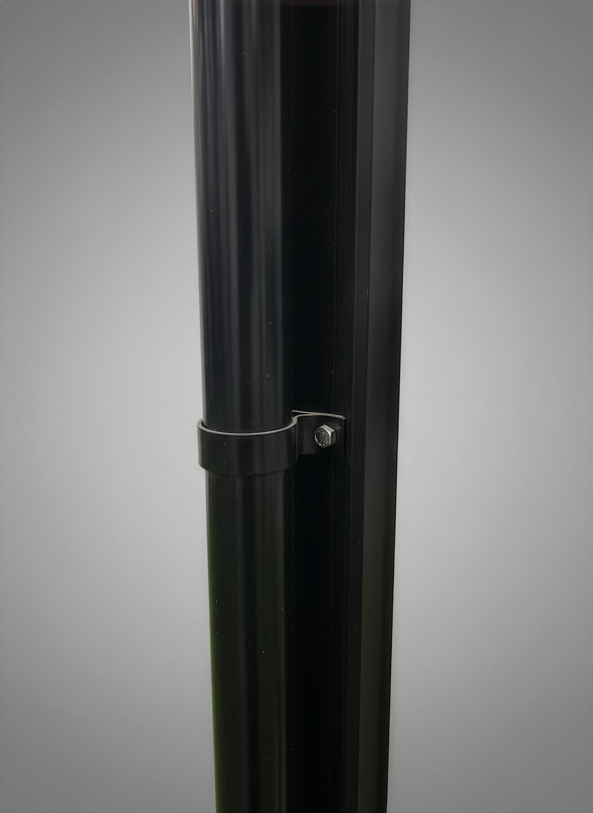 Stuprörsfästen (M0) i svartlackerad aluminium som enkelt monteras med en självborrande skruv i växthusets profil. Passar till växthus Ginkgo, Pion, Viola & Begonia.