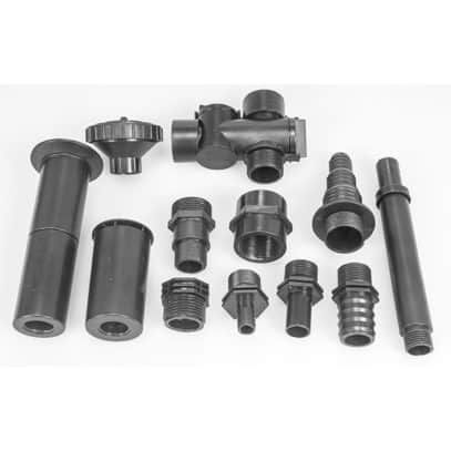Pumparna levereras kompletta med ett antal tillbehör både när det gäller munstycken och slangadapter. Vattenflödet kan enkelt regleras med den medföljande kranen.