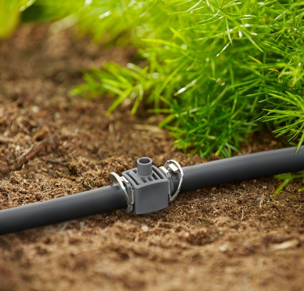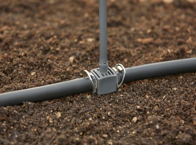 GARDENA T-koppling för spridarmunstycken ingår i GARDENA Micro-Drip-systemet och används för att fästa munstycken på 13 mm (1/2") på anslutningsröret. Installationen görs tillsammans med en rörstyrning eller rörklammer. T-kopplingen är särskilt lämplig för förlängning av sprutmunstycken i kombination med förlängningsröret.
