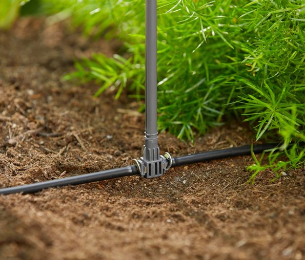 GARDENA T-koppling för strålpistoler som en del av GARDENA Micro-Drip-System är avsedd att ansluta strålpistoler till försörjningsröret på 4,6 mm (3/16"). Det här görs i kombination med en rörstyrning eller rörklamrar. T-kopplingen är särskilt lämplig för förlängning av sprutmunstycken i kombination med förlängningsröret.